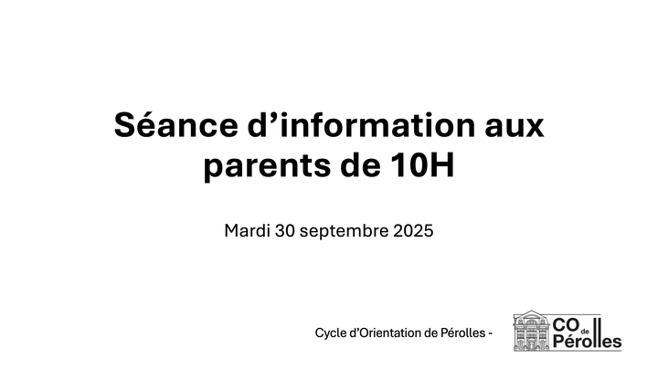 Document pour la séance d'information pour les parents des 10H se déroulant le 30 septembre.