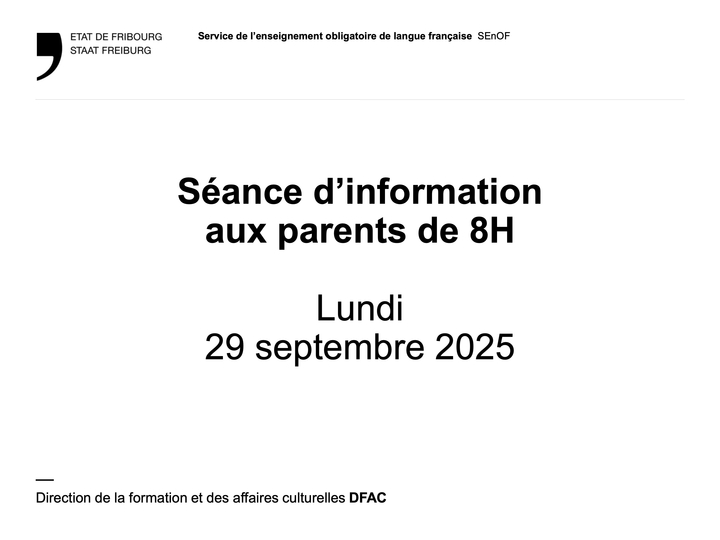 Document pour la séance d'information pour les parents des 8H se déroulant le 29 septembre.